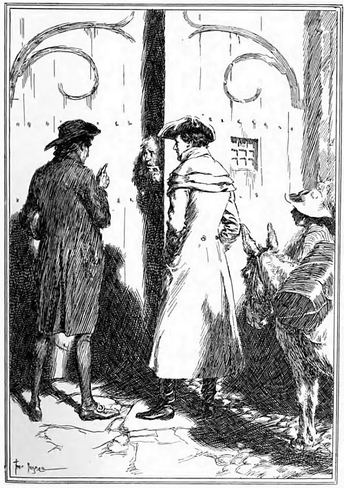 "Your eyes will positively drop out," said the fiddler, "if you stare any more." He drew a snuff-box from his discarded coat and tapped it with his finger: "A pinch is but a poor thing, if a man has not a ruffle to his wrist," he said, and was not ill-pleased to see how Steven marvelled at the grace with which he swung his borrowed laces, the air with which he flipped an invisible atom from his cuff. He took a step as though his legs had never known but silk. Steven's suit, if a little large, hung on his figure with a notable fitness.