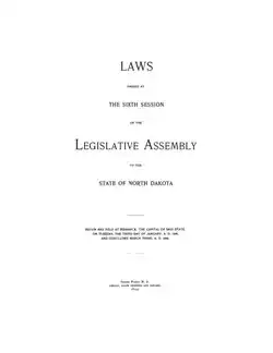 Appeals From Justice Court (Chapter 3) Assessments (Chapters 4-5) Asylum for Poor (Chapter 6) Appropriations (Chapters 7-27) Banking (Chapters 28-29) Board of Health (Chapter 30) Building and Loan Associations (Chapters 31-33) Bounties (Chapters 34-35) Burial of Animals (Chapter 36) Butchers (Chapter 37) Caucuses (Chapter 38) Chaplain of the Senate (Chapter 39) Cities (Chapters 40-42) Coal Mines and Wells (Chapter 43) Commissioner of Agriculture and Labor (Chapters 44-45) Concealing Estrays (Chapter 46) Continuance of Cases (Chapter 47) Courts (Chapters 48-51) Corporations (Chapters 52-55) County Auditors (Chapter 56) County Boundaries (Chapter 57) County Boards of Health (Chapter 58) County Commissioners (Chapters 59-61) County Courts (Chapter 62) County Depositories (Chapter 63) Clerk of District Court (Chapter 64) Conservator for Drunkards (Chapter 65) Contingent Fund (Chapter 66) County Treasurers (Chapter 67) County Judge (Chapters 68-69) County Seats (Chapter 70) Dams (Chapter 71) Dairy Products (Chapter 72) Delinquent Taxes (Chapter 73) Discharge of Mortgages (Chapter 74) Divorce (Chapters 75-78) Drains (Chapters 79-80) Education (Chapters 81-86) Election (Chapter 87) Eminent Domain (Chapter 88) Encumbrances (Chapter 89) Ferries (Chapter 90) Fish Commissioner (Chapter 91) Firemen's Association (Chapter 92) Game and Fish (Chapter 93) Geological Survey (Chapter 94) Grasshoppers (Chapter 95) Guardian (Chapter 96) Highways (Chapter 97) Home for Orphans (Chapter 98) Hospital for Insane (Chapter 99) Husband and Wife (Chapter 100) Immigration (Chapter 101) Insurance Companies (Chapter 102) Labor of Convicts (Chapter 103) Legislative Employes (Chapter 104) License of Attorneys (Chapter 105) Linseed Oil (Chapter 106) Lost or Destroyed Papers (Chapter 107) Marks or Brands (Chapter 108) Mechanics' Liens (Chapter 109) Mortgaging Real Estate (Chapter 110) National Guard (Chapters 111-112) Negotiable Instruments (Chapter 113) Notes of Issue (Chapter 114) Noxious Weeds (Chapter 115) Official Bonds (Chapter 116) Oil Inspector (Chapter 117) Peddling (Chapter 118) Penitentiary (Chapter 119) Personal Property (Chapter 120) Pounds and Poundmasters (Chapter 121) Prairie Fires (Chapter 122) Public Printing (Chapters 123-125) Public Warehouses (Chapter 126) Railroads (Chapters 127-129) Railroad Commissioners (Chapters 130-131) Register of Deeds (Chapter 132) Registration of Voters (Chapter 133) Revenue and Taxation (Chapters 134-139) Roads (Chapters 140-141) Sabbath Breaking (Chapter 142) School Corporations (Chapter 143) School Districts (Chapter 144) School District Sinking Fund (Chapter 145) Services of Sires (Chapter 146) Sheep Inspectors (Chapter 147) Soldiers Home (Chapter 148) States Attorneys (Chapter 149) State Depositories (Chapter 150) State Examiner (Chapter 151) State Funds (Chapter 152) Supreme Court (Chapters 153-154) Tax Deeds (Chapter 155) Telephone Lines (Chapter 156) Title to Real Property (Chapters 157-158) Township Meetings (Chapter 159) Township Supervisors (Chapter 160) Trespass of Animals (Chapters 161-162) Twine and Cordage Plant (Chapter 163) University (Chapter 164) University and School Lands (Chapters 165-166) Unrecorded Instruments (Chapter 167) Veterinary Surgeons (Chapter 168) Vital Statistics (Chapter 169) Vouchers and Warrants (Chapter 170) Water Companies (Chapter 171) Water Works (Chapter 172) Water Rights of Way (Chapter 173) Witnesses (Chapters 174-175) Concurrent Resolutions Joint Memorials Joint Resolutions Proposed Amendments to Constitution |