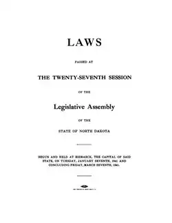 Animals (Chapters 16-20) Appropriations (Chapters 21-99) Banks and Banking (Chapters 100-103) Beverages (Chapters 104-105) Bonds (Chapters 106-110) Bounties (Chapter 111) Constitutional Amendments Proposed (Chapters 112-114) Corporations (Chapters 115-124) Counties (Chapters 125-140) Crime (Chapters 141-146) Dances (Chapter 147) Elections (Chapters 148-151) Game and Fish (Chapters 152-162) Gas and Oil (Chapters 163-170) Highways (Chapters 171-176) Insurance (Chapters 177-180) License (Chapters 181-187) Liens (Chapters 188-189) Mortgages (Chapter 190) Motor Vehicles (Chapters 191-197) Municipal Corporations (Chapters 198-210) North Dakota (Chapters 211-233) Photography (Chapter 234) Procedure (Chapters 235-240) Public Welfare (Chapters 241-244) Repeals (Chapters 245-251) Schools (Chapters 252-260) Social Security (Chapters 261-262) State Institutions (Chapters 263-266) Taxation (Chapters 267-290) Unfair Trade Act (Chapter 291) Validations (Chapters 292-294) Veterans (Chapter 295) Vital Statistics (Chapters 296-297) Water Conservation (Chapters 298-300) Weights and Measures (Chapters 301-302) Workmen's Compensation (Chapters 303-306) Youth Council (Chapter 307) Initiated Measures Approved (Chapters 308-310) Initiated Measures Disapproved Constitutional Amendments Approved Constitutional Amendments Disapproved Referred Measures Disapproved Resolutions Vetoes |