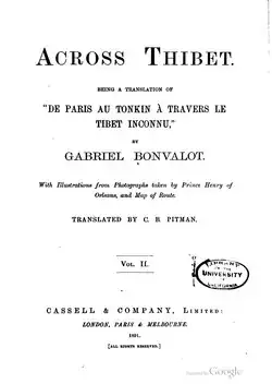 of 150 per Cent. — Ploughing at So — Crossing the Sotchou — A Bearded Thibetan — Why Dishonest Chiefs are Popular 92—1 19 218G57 ^ , Digitized by VjOOQICi ACROSS THIBET. CHAPTER XIII. NATIVE CUSTOMS AXD CHARACTERS. PACK A Thibetan Vitellius — Chang — Commercial Chinamen — Native Women — Polyandry and Polygamy — Beggars — Contentment — ^The Chief of the District at Home — A Theo- logical Question — Departure from Scrcsumdo— Mendicant Lamas and their Music — News from Lhassa — The Hone>Tnoon in Thibet — Novel Method of Crossing a Stream — Tumblers — A Chief in his Cups — A Scene of Home Life— Fores Majeure — Fickle- ness of the Natives : the Probable Cause — At Karimeta — Primitive Husbandry — A lamaess— Praying Windmills— Tchoungo — The Dala and Djala Passes — A Splendid Prospect — A Pagoda — Houmda—Lagoun : a Manufacturing Town 120—151 CHAPTER XIV. FROM LAOOUN TO CUANGKA. Lam6 — Lamda — Bad Food— Religious Malthusianism — Crossing the Satchou— Capture of a New-bom Monkey — Koushoune — Ouoshishouno — A Fat Lama — Dz^rine— Hassar — Thibetans and Chinese : a Contrast— Indefinite Dates — Rough and Ready Justice — Dotou — A Dignified Chinese OflScial— A Series of Prayer Mills— Rachmed in Action — The Chinese Army — Parting with the Lama Guide — Tsonk6 — A Secret Christian — The Destruction of the Batang Mission — Burial-place of a French Mis- sionary — Reception by the Mandarin of Changka — Four Swords for 160 Men... 152 — 181 CHAPTER XV. BATAXO, TAT8IEN-LOU, AXD TOXQUIN. Religious Prophylactics — " Red " and " Yellow " Lamaism — The Lamas as Capitalists — From Changka to Koushou — The Tea Trade between China and Thibet— Leindiinne — Anarchy — Chinese Inns — The Blue River (Kin-sha-Kiang) — Frenchmen in Thibet — Chinese Justice — An Orgie — Chinese Soldiers : the Courage of Numbers — At Batang^-A Series of Questions— Tatsien-Lou — The French Missionaries There— A Difficulty with the Mandarin — Apology — Chinese Administration — Sending Home the Photographs— The Red River— On French Soil— Hanoi— The Future of Tonquin —Conclusion 182—221 Digitized by GoogleLIST OF ILLUSTRATIONS IN VOL. II. PAGE Talking Over the First Thibetans 9 Tent at Burben-cho 16 Thibetans at Burben-cho 17 Thibetan Homsbmen 21 A Petty Chief 25 The Namtso 29 Pack-Horses 33 Religious Insignia 34 The Petty Amban 41 Tent op the Envoys from Lhassa 48 Thibetans Loading a Yak 56 The Caravan in Motion 65 The Cooking Tent 70 Chief of the Djashas 71 Thibetan Savages round a Fire 76 The Ta-Lama, the Ta-Amban, and other Chiefs from Lhassa 81 A Thibetan Saluting 85 The Lama Guide 88 An Attendant of the Amban 89 Thibetan Horsemen 91 Monument near the Lama-house of So 92 Thibetan of the Redskin Type 97 Yak Driver with Prayer-mill 100 A Loaded Yak 104 The Lama-house at So 109 A House at So 113 Women at Bata-Soumdo 119 Woman and Child of Sérésumdo 120 House at Sérésumdo 121 Types of Natives at Sérésumdo 125 Mendicant Lamas 129 Scene near Sérésumdo I37 The "Obo" at Tchounoo 145 Prayers Carved on a Stone 151Thibetan of Tiéchoung 152 A Thibetan Village 153 Bridge at Sougomba 157 Crossing the Satchou 161 Group of Natives 168 Scene in Inhabited Thibet 169 Ruins in the Maktchou Valley 176 Lama-house at Dotou 177 Prayer-mill at Dotou 181 A Dancer 182 Dancers at Changka 185 A Buddhist Chapel 187 The Kin-sha-Kiang (Great Blue River) 189 Women at Batang 192 Lamas at Batang 193 General View of Litang 197 Litang: View from the Roofs 200 Chinese Fort at Litang 201 Entrance to the Tatsien-Lou Valley 204 French Missionaries 208 Fishing with Cormorants 212 Lolos 216 The Red River 217 Lao-kai 220 Rachmed and a Thibetan Innkeeper 221 |