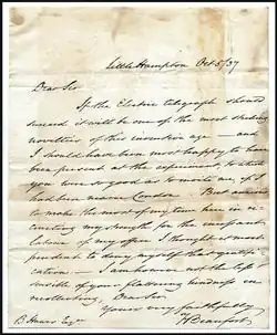 Letter to Sir Benjamin Hawes pertaining to the electric telegraph
