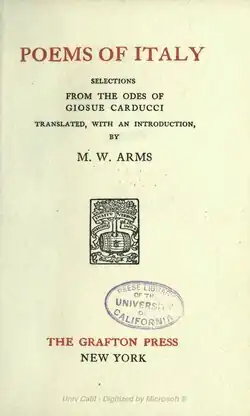 POEMS OF ITALYselectionsfrom the odes ofGIOSUE CARDUCCITranslated, with an introduction,byM.W. Arms