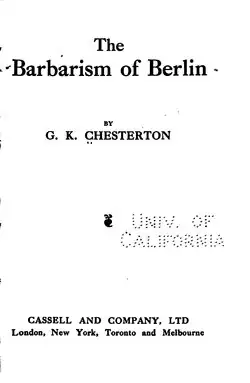 Chesterton - Barbarism of Berlin (Cassell, 1914).djvu