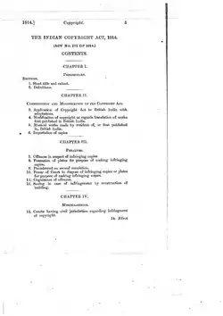 | pp. 5-13 are the Act pp. 14to50 First Schedule - Being an abridged reprint of Copyright Act 1911 (U.K) , with the sections relevant to India. |
