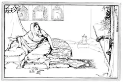 The Ranee, on hearing how well the Princesses fared, was exceedingly angry, and sent her servants to pull down the dead Ranee's tomb, and fill the little tank with the ruins. And not content with this, she next day pretended to be very, very ill—in fact, at the point of death—and when the Raja was much grieved, and asked her whether it was in his power to procure her any remedy, she said to him: "Only one thing can save my life, but I know you will not do it." He replied, "Yes, whatever it is, I will do it." She then said, "To save my life, you must kill the seven daughters of your first wife, and put some of their blood on my forehead and on the palms of my hands, and their death will be my life." At these words the Raja was very sorrowful; but because he feared to break his word, he went out with a heavy heart to find his daughters.