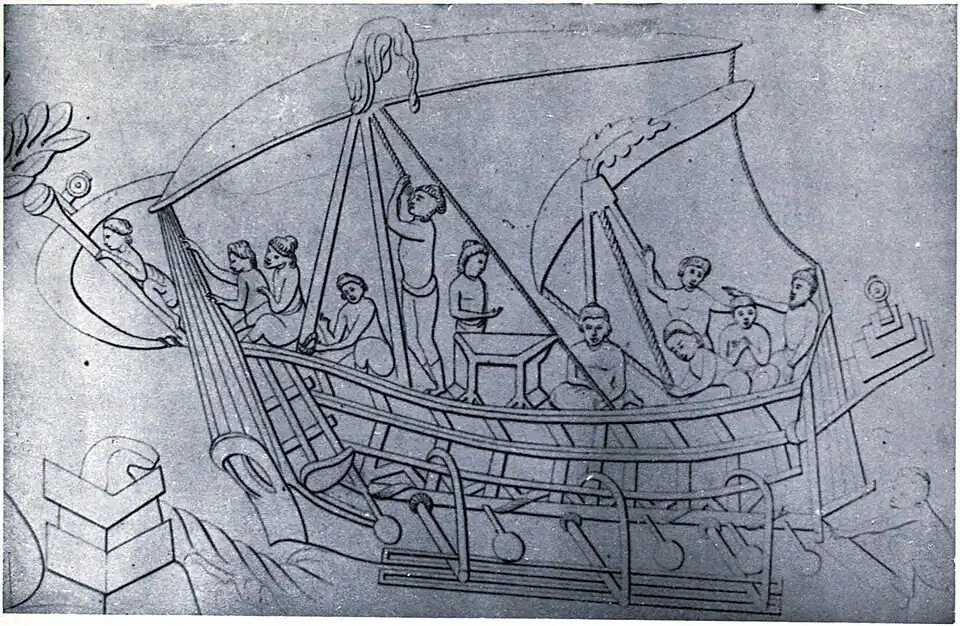 I shall now present a very important and interesting series of representations of ships which are found not in India but faraway from her, among the magnificent sculptures of the Temple of Borobudur in Java, where Indian art reached its highest expression amid the Indian environment and civilization transplanted there.