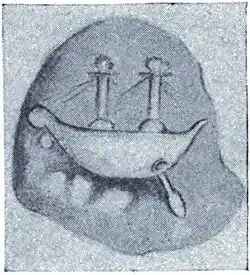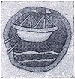 In his South Indian Buddhist Antiquities,[25] Alexander Rea gives illustrations and descriptions of three of these ship-coins of the Andhras. They