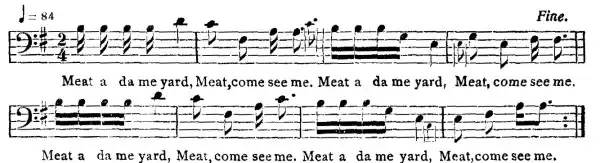 Meat a da me yard, Meat, come see me. Meat a da me yard, Meat, come see me.