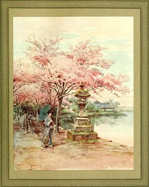 - ↑ I regret to say that since writing this a typhoon wrenched this stone lantern from the cement in which it was imbedded and dashed it into a thousand pieces down the stone steps which it had lighted.