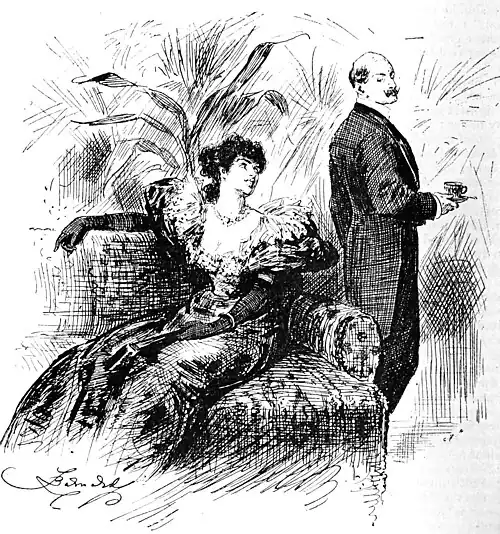At the end of my dance my own partner, a pretty little girl in pink, left me with the remark, "You're awfully stupid to-night! I ask you if you've seen Manon Lescaut, and the only thing you say is, 'The panel buttons up, I thought so.'" This convinced me that it was dangerous to dance again, and I waited in the room only until the supper was ready, and Mrs. Kavanagh passed me, making for the dining-room, on the arm of General Sharard. I had loitered to see what jewels she wore upon her dress; and when I had made a note of them, I slipped from the front door of the house unobserved, and took a hansom to my place in Bond Street.