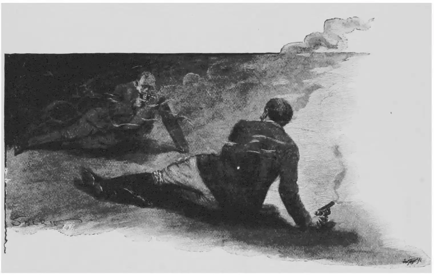 Then he remembered that his Smith-Wesson had only five chambers. Salter's Colt probably had six. He saw the flame leap from the muzzle, and at the same instant Salter's head dropped with a thump on the floor. A red-hot knife seemed to pierce his shoulder, and then he dropped as well, just too soon to hear angry shouts and the stamping