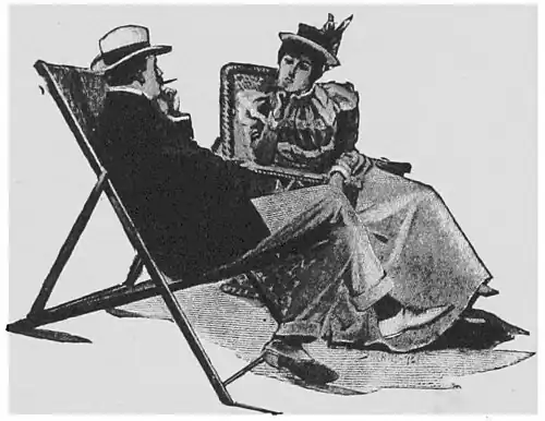 He found it, after a day or two's prospecting, sitting in a deck-chair which, just as he passed, took a run across the deck, propelled by a sudden roll of the vessel. Of course he took full advantage of the fact of being on the spot, helped the lady to her feet, put the chair back in a safer position, fetched the book which had fallen out of her hand, and then dropped into an unoccupied chair alongside which he had purposely placed that of the fair unknown.