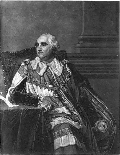 The Marquis of Lansdowne, K.G. from a mezzotint of the group with Lord Ashburton & Colonel Barré belonging to Lord Northbrook, painted by Sir Joshua Reynolds in 1787