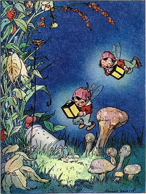 “I must let them know!” the fire-fly cried, as he flew from the spool of white linen thread.