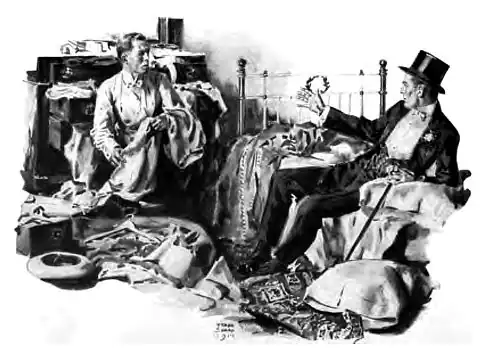 AS Dick Minot bent over to pick up his scattered property, a knock sounded on the half-open door, and Lord Harrowby drooped in. The nobleman was gloom personified. He threw himself despondently down on the bed.