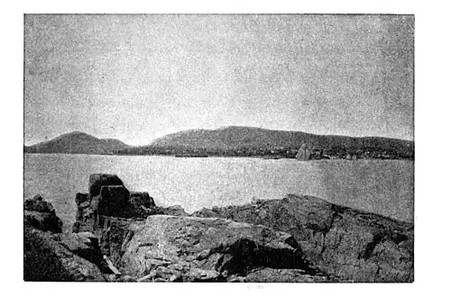 The village, the chief centre, lies by the water's edge, facing the islands which enclose the natural harbour. It was and is a fishing village, like many another on the coast. In the midst of it, vast wooden hotels, four times as high as the houses nearest to them, have sprung up to lodge fashion in six-storied discomfort. The effect is astonishing; for the blatant architect, gesticulating in soft wood and ranting in paint,