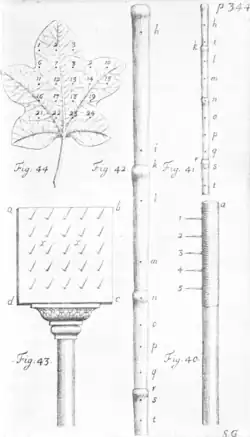 ![]() Plate 18 from Hales's Vegetable Staticks Fig. 40. Instrument devised by Hales to make prick-