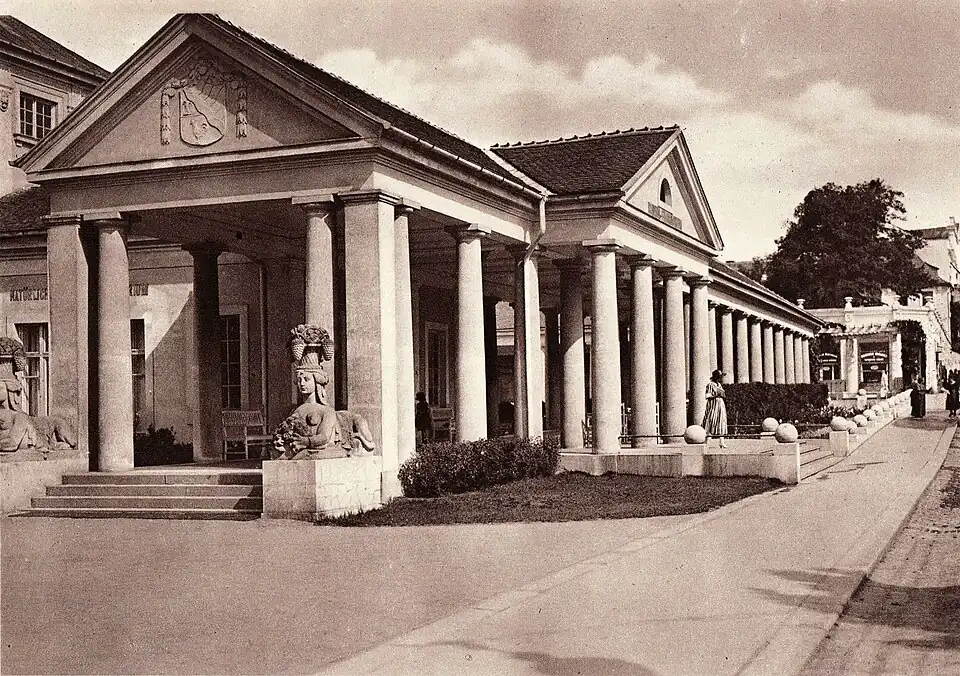 | Kurplatz mit dem Franzensbrunnen. | Esplanade with Francis Spring. |