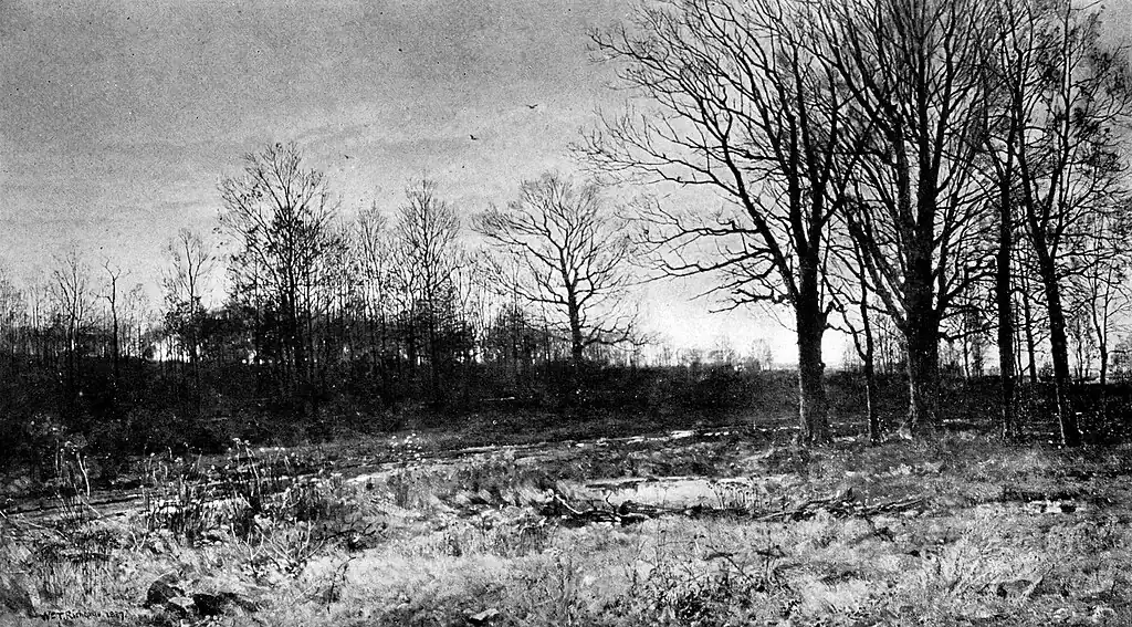 "During this time he had become acquainted with Mr. George Whitney, who became a most enthusiastic patron, and for whom he did some of his very best landscape work. Nothing can exceed the wonderful painting of tree trunks in some of his wood pictures.