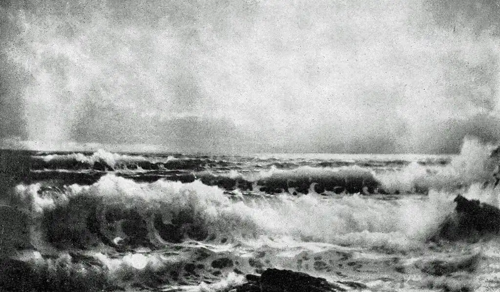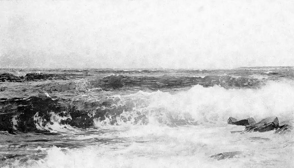 In 1878, the family spent two years in England, laying foundations on those coastwise cliffs which led to the impressive canvases of rocks and surf of later days. There was a brief stay in Paris, too; but cheerful winters were spent in London, and the summers passed at various villages on the south and southwest coast of England, and Professor Theodore Richards says that during these years his father learnt much about rocks, and the complex wave motion caused by a broken shore.