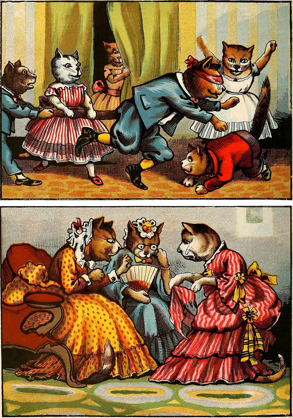 | The Five Little Pigs. | | | Old Woman who lived in a Shoe. | | | Dame Trot and her Cat. |