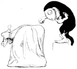 And when the Hobyahs came to their home they hung up the bag with the little girl in it, and every Hobyah knocked on the top of the bag and said, "Look me! look me!" And then they went to sleep until the next night, for the Hobyahs slept in the daytime.