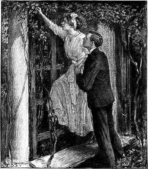 Tom sprang away from the trellis, on which he had been half reclining. "Bless my soul!" he exclaimed. "Why did n't you tell me? I have a great affection for that rambler; it was your planting it that first made me—think favorably of you. Has it any roses on it? I can't see in this light."