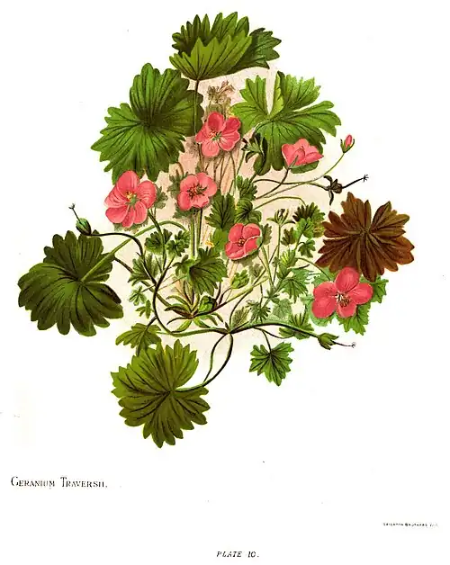 A beautiful plant, confined to the Chatham Islands. It is allied to the world-wide G. dissectum but is easily distinguished by the larger size, stiffer leaves, covered with almost hoary down, and by the much larger flowers. It is well worthy of more general cultivation as a garden plant. It flowers in January.