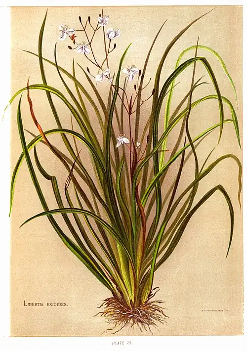 Not uncommon throughout the whole of the Islands. Growing in damp, swampy places. Leaves sometimes stiff, rigid, and of a bright yellow colour, and also grassy, as in the plate. Flowers very tender and fugacious, of the purest white. (Cheeseman). It flowers in November and December. Thames.
