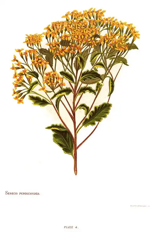 A compact close-growing little shrub, 6–12 ft. in height, apparently confined to a very limited district near the East Cape (North Island) where it was first collected, over a hundred years ago, by Banks and Solander, the distinguished naturalists who accompanied Cook in his first voyage to New Zealand. It is not closely allied to any of the other species native to the country, and can be easily recognized by its small oblong waved and crenate leaves, nearly smooth habit, and rather small flower heads. It flowers in December.