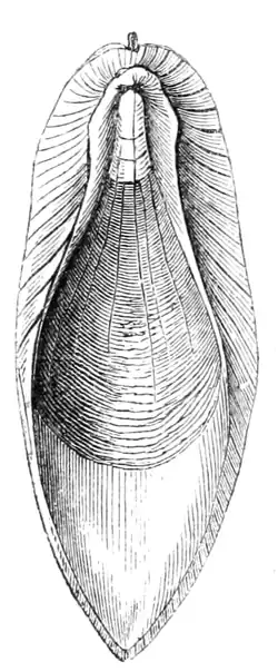 The lingering rudiment of a vertebrate skeleton in these animals has been already noticed; their body encloses, however, a solid support of quite another nature, which represents the true shell so characteristic of Mollusca generally. Within the substance of the mantle, if we slit it up along the line of the back, we find an oblong cavity, within which lies loose, and unconnected with it a large plate, horny in some species and shelly in others. The pen of the common Squid (Loligo vulgaris) is of the former texture; the substance called cuttle-bone, so often found on sandy beaches, is of the latter; but both are strictly analogous to the shell of the slug, which is also enclosed within the mantle; and both are formed in the same manner, namely, by a deposition of horny or shelly matter in a fluid state from the sides of the containing cavity.