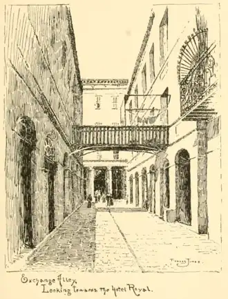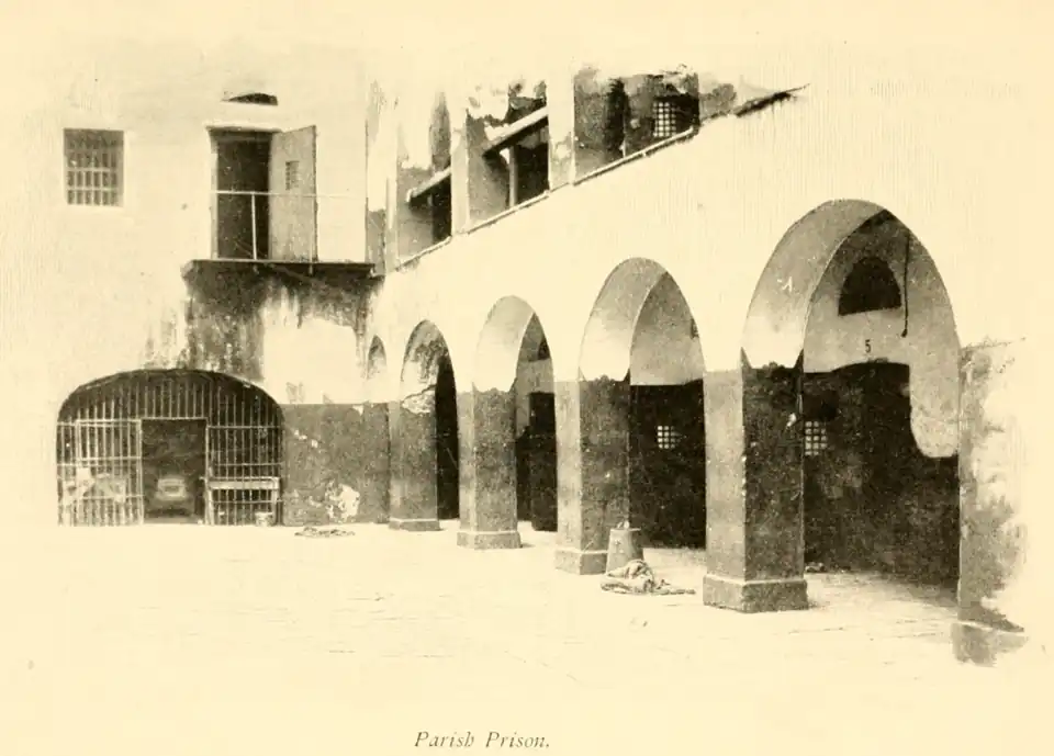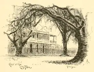 The old Spanish building opposite the side of the Cabildo, on St. Peter and Chartres streets, was, at this time, the restaurant "La veau qui tête," famed for its wine and cooking and its patronage by the élite. Below, on Chartres, between Dumaine and St. Philip, was the old Café des Emigrés, the headquarters for the St. Domingans, where their favourite liquor, "le petit gouave," was concocted.