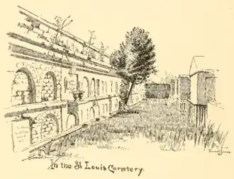 The next year came the great epidemic of cholera and yellow fever. Although no mention has been made of it; during and accompanying all these years, when prosperity flushed the city, and wealth piled in banks, or ran in pleasure . . . there was at the rout and feast not any conventional, suggestive memento mori, there was Death itself, Death, as palpable, visible, audible, as a stolid official executioner; and not as a fleeting presence but functioning steadily, regularly for days, weeks, months, year after year. In the colonial _64.png)