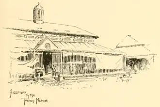 The landing for flatboats and barges had been located by the Spanish government outside the city walls, along the willow-grown bank in front of the Tchoupitoulas road, which fixed it as the quarter for American settlement. This was in front of the old Jesuits' plantation, extending from the Terre Commune, or government reservation, outside the walls, to the line marked by Delord street, which was then owned by Bertrand and Marie Gravier. In the business reaction after the great conflagration of Miro's time, they divided their tract of land into lots and streets, and found ready investors in it. It was called Ville Gravier, until Jean Gravier changed it to Faubourg Ste. Marie, in honour of his mother. The Tchoupitoulas road became Tchoupitoulas street. The government storehouses for Kentucky tobacco, just outside the Terre Commune, gave Magazine street its Spanish name, Calle del Almazem. The Campo de Negros, or Negro Camp, named Camp street, beyond which, stretching out to the swamp, were the truck gardens that supplied the markets. The first street crossing the Faubourg Ste. Marie was Gravier street, running into the swamp. At the end of it, about the rear of the Poydras market, stood the old plantation house and home of Jean Gravier. Poydras, Girod, and Julia, a free coloured woman, named the streets which defined their investments on the river front. The Terre Commune became Common street; the Faubourg Ste. Marie became the second municipality of the city, and, ever attracting the American settlers, it stretched upwards, taking in, one after another, the old historic plantations.