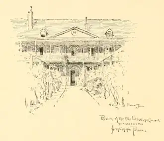 It took seven years for the company to finish the convent. In the meantime, the administrators of the Company of the West had surrendered the Louisiana Charter, and the colony had once more returned into the wardship of the royal government. Pontchartrain immediately reinstated Bienville in his old position of governor. It was he, therefore, who, in July, 1734, formally handed over the new convent to the Ursulines, and installed them therein. We see his fondness for ceremony and state in the account of it: At five o'clock in the afternoon the convent bells rang forth a merry peal. The colonial troops marched up and ranged themselves on each side of the gate. Bienville, with the intendant and a suite of distinguished citizens, arrived to serve as escort. The chapel doors opened and the procession filed out. First came the citizens; after them the children of the orphanage and day school, followed by forty ladies of the city, all holding lighted tapers and singing hymns. Then came twenty young girls dressed in white, preceding twelve others in snow white robes and veils, bearing palm branches, representing St. Ursula and her eleven thousand virgins, attended by little girls dressed as angels. The young lady who personated St. Ursula wore a costly robe and mantle, and a crown glittering with diamonds and pearls, from which hung a rich veil; in her hand she carried a heart pierced with an arrow. Then came the nineteen Ursulines, in their choir mantles and veils, holding lighted candles; after them the clergy bearing the sacrament under a rich canopy. Bienville, the intendant, and the military officers, all with lighted candles, walked at the head of the royal troops, which closed the procession, their drums and trumpets blending with the chanting of the nuns and priests ahead of them. As soon as they came in sight of the new building, its bells began a chime of welcome, joining in with the fifes, drums, trumpets, and singing. That new convent is the present Archbishopric,—the oldest building in the Mississippi Valley, the oldest conventual structure in the United States. As much