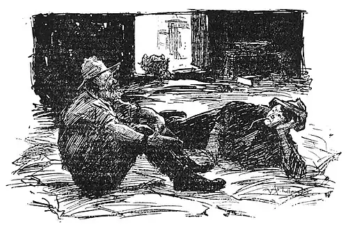 Dave came in. He understood the situation at a glance. The scene was not new to him. He sat down, leant forward, picked a straw off the floor and twisted it round and round his finger, reflecting.