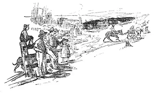 DAD used to say that Shingle Hut was the finest selection on Darling Downs; but we never could see anything fine about it—except the weather in drought time, or Dad's old saddle mare. She was very fine. The house was built in a gully so that the bailiffs (I suppose) or the blacks—who were mostly dead—could n't locate it. An old wire-fence, slanting all directions, staggered past the front door. At the rear, its foot almost in the back door, sloped a barren ridge, formerly a squatter's sheep-yard. For the rest there were sky, wallaby-scrub, gum-trees, and some acres of cultivation. But Dad must have seen something in it, or he would n't have stood feasting his eyes on the wooded waste after he had knocked off work of an evening. In all his wanderings—and Dad had been almost everywhere; swimming flooded creeks and rivers, humping his swag from one end of Australia to the other; at all games going except bank-managing and bushranging—he had seen no place timbered like Shingle Hut.