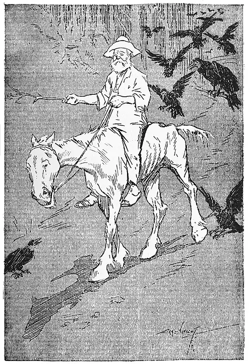 The seventh week Dad came back. He arrived at night, and the lot of us had to get up to find the hammer to knock the peg out of the door and let him in. He brought home three pounds—not enough to get the wire with, but he also brought a horse and saddle. He did n't say if he bought them. It was a bay mare, a grand animal for a journey—so Dad said—and only wanted condition. Emelina, he called her. No mistake, she was a quiet mare! We put her where there was good feed, but she was n't one that fattened on grass. Birds took kindly to her—crows mostly—and she could n't go anywhere but a flock of them accompanied her. Even when Dad used to ride her (Dan or Dave never rode her) they used to follow, and would fly on ahead to wait in a tree and "caw" when he was passing beneath.