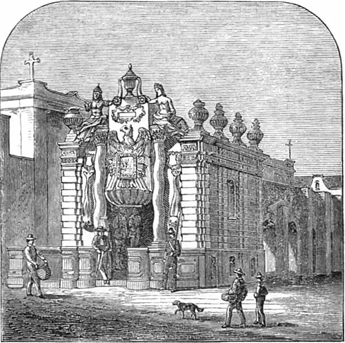 To the north-east, beyond the city, was Guadaloupe, and the villages along the shores of Lake Tezcoco. Nearer by, off a little to the left, not far from the great aqueduct of San Cosme,—which, oh Vandalic outrage! is now being demolished to give place to a railroad track—is the Church of the Noche Triste, and the great tree in which Cortez hid on the night of his disastrous retreat from Mexico. To the right, Tacubuya, with its monument to the honor of the brave men who fell in the defense of Mexico against the American Army under General Scott, and the scene of many a fearful deed of blood and outrage. Behind the castle, the red-walled and flat-roofed "Molino del Rey," where so many gallant American soldiers laid down their lives; and further south, the battle-fields of Contreras and Churubusco.