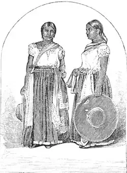 The hall and corridors were filled with as fine a company as could be gathered on the Continent, and with all due respect to my fair countrywomen, I must admit, that I never saw so many beautiful ladies at a ball of the same size in the United States. The ladies here usually make their own dresses—there is but one French milliner in this city of ninety thousand people—and exhibit a taste in the selection of materials and colors very rare with us. Light gauzes, green and white, blue and white, or red, green and white, contrasted, appear to be the favorite, and the dresses are cut low at the neck and with short sleeves. The temptation to bring out their brilliant black hair and lustrous eyes in strong contrast by the use of pearl powder and rouge, is often too strong for resistance with the belles of Guadalajara, but this feature is not more noticeable in one of their ball rooms than in one of our own. They all dance well, but their parties on public occasions are less enjoyable from the fact that introductions off-hand, are not in vogue as with us, and a stranger may roam around all the evening without making an acquaintance, save by chance.