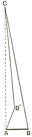 to the direction of the earth's motion. He shews elsewhere that if the star is in any other direction the effect is of the same kind but less in amount. In Bradley's figure (fig. 74) the amount of the star's displacement from its true position is represented by the angle b c a, which depends on the proportion between the lines a c and a b; but if (as in fig. 75) the earth is moving (without change of speed) in the direction a b' instead of a b, so that the direction of the star is oblique to it, it is evident from the figure that the star's displacement, represented by the angle a c b', is less than before; and the amount varies according to a simple mathematical law[1] with the angle between the two directions. It follows therefore that the displacement in question is different for different stars, as Bradley's observations had already shewn, and is, moreover, different for the same star in the course of the year, so that a star appears to describe a curve which is very nearly an ellipse (fig. 76), the centre (s)