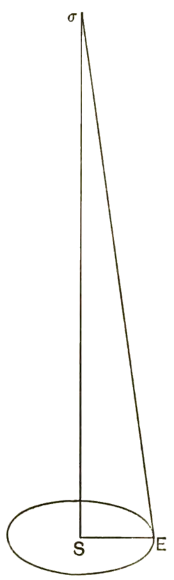 - ↑ The figure has to be enormously exaggerated, the angle s σ e as shewn there being about 10°, and therefore about 100,000 times too great.