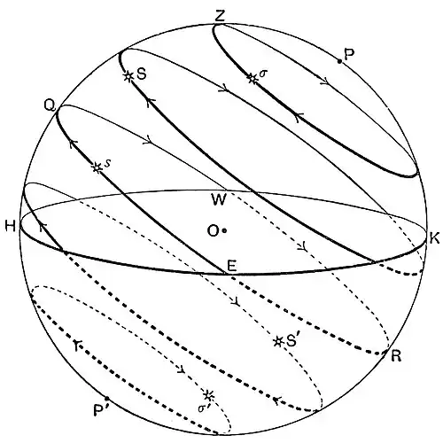 If an observer notices soon after sunset a star somewhere in the west, and looks for it again a few evenings later at about the same time, he finds it lower down and nearer to the sun; a few evenings later still it is invisible, while its place has now been taken by some other star which was at first farther east in the sky. This star can in turn be observed to approach the sun evening by evening. Or if the stars visible after sunset low down in the east are