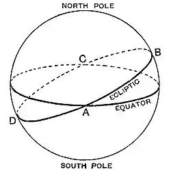 Fig. 4.—The equator and the ecliptic. was the first to discover the obliquity of the ecliptic is almost certainly wrong. It must have been known with reasonable accuracy to both Chaldaeans and Egyptians long before.