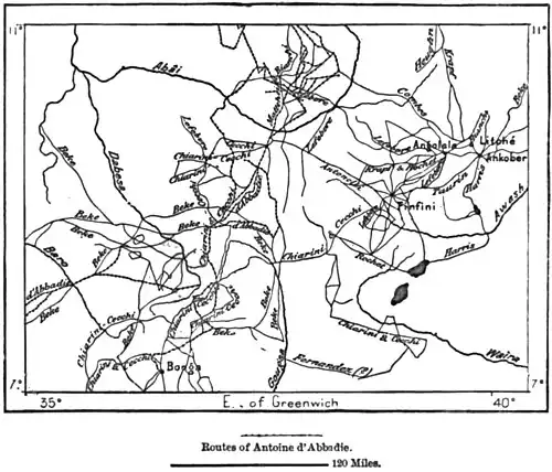 Fig. 62. — Routes of the Chief Explorers in South Abyssinia.