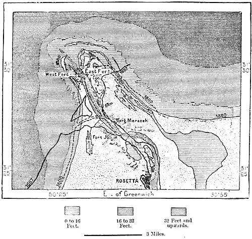 Below Cairo the two ranges of hills, confining the Nile as in a ditch, gradually retire as they merge in the plains, leaving the river to ramify and flow through divergent branches into the Mediterranean. The triangular disposition of this alluvial plain has caused the term delta[1] to be applied to the whole region, and by