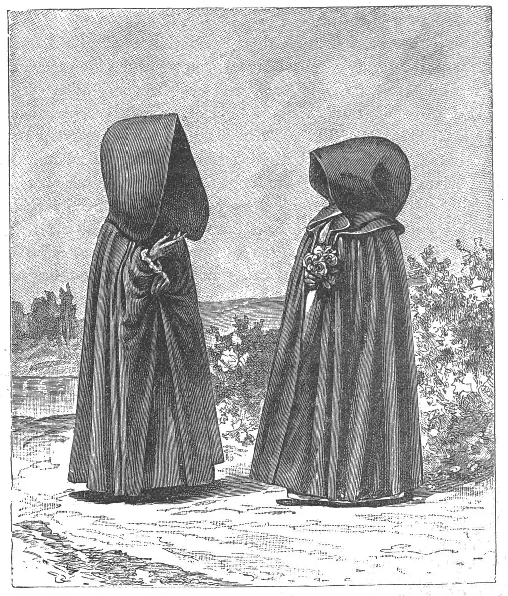 tour of the world. Amongst the rural classes marriage is nearly always an affair of pure convenience and interest. A few traces still survive of the former seclusion of the women, noticeable in the construction of the houses and especially in the costume. Enveloped in their large hooded cloaks, the Azorian women seem to flit about like phantoms. Many of these hoods are still so contrived as to meet in front, leaving only a narrow opening for the wearer with which to see without being seen. In the district of San Miguel the wife, when paying a visit or going to mass, may not walk by the side of her husband, who struts majestically a few