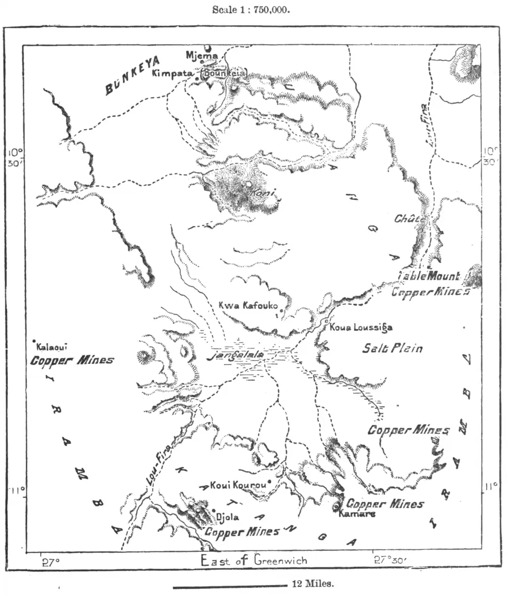 of Lake Moero. The present Kazembe, as it is called from the king's title, lies south of the same basin, near an island inhabited by the Messiras, unmixed descendants of the aborigines conquered by the ancestors of the Kazembe. Lacerda, one of the first martyrs of science in Central Africa, died in 1798 at Nshinda (Lucenda) near Kazembe.