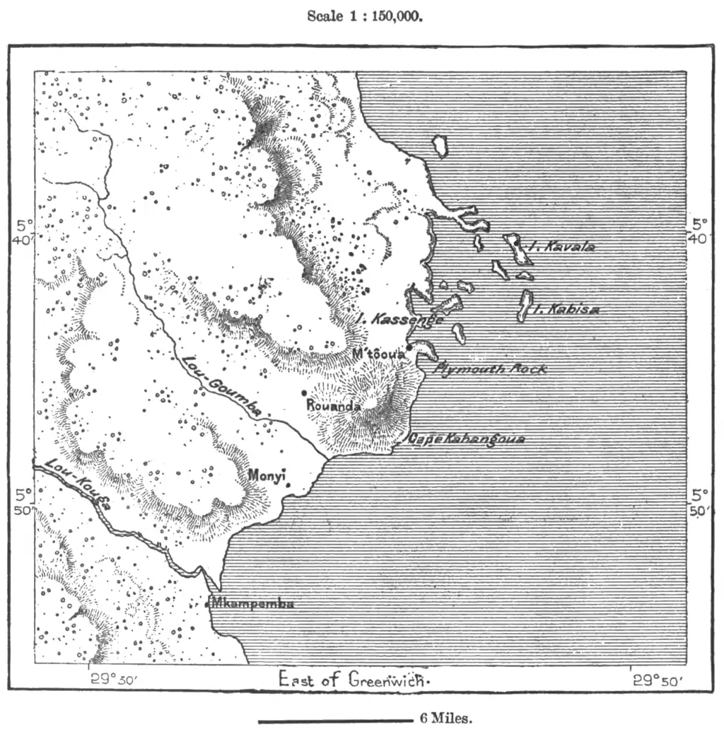 Since 1885 a European village has stood on the islet of Kavala near a little insular group fringing the coast north of Cape Kahangwa. The English missionaries
