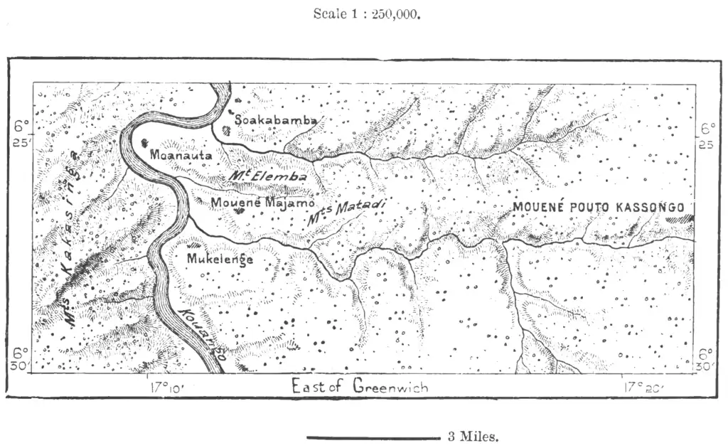 slaughtered at the graves of the great chiefs, but the succession is still in the female line, to the eldest son of the eldest sister. The yaga or kassanjé, that is, the supreme soba, or chief of the Ba-Ngala nation, is elected by four dignitaries, whose choice is limited to the members of three families. According to the Portuguese traders, these electors mix a subtle poison with the cup presented to the new king, who is thus brought to the grave within a period of three years. The reigning sovereign, however, has dispensed with this inconvenient ceremony, preferring to be master de facto if not de jure. The Ba-Ngala capital takes the name of Kassanjé from the king, although better known to the Portuguese by the name of Feira, or "the Fair." Tere are effected the changes between the coast traders and the Kioko and Lunda merchants from the interior. Till 1860 the Portuguese commanded at Kassanjé; but in that year a revolution broke out, the warehouses were plundered, the orange groves cut down, and of twenty-one traders